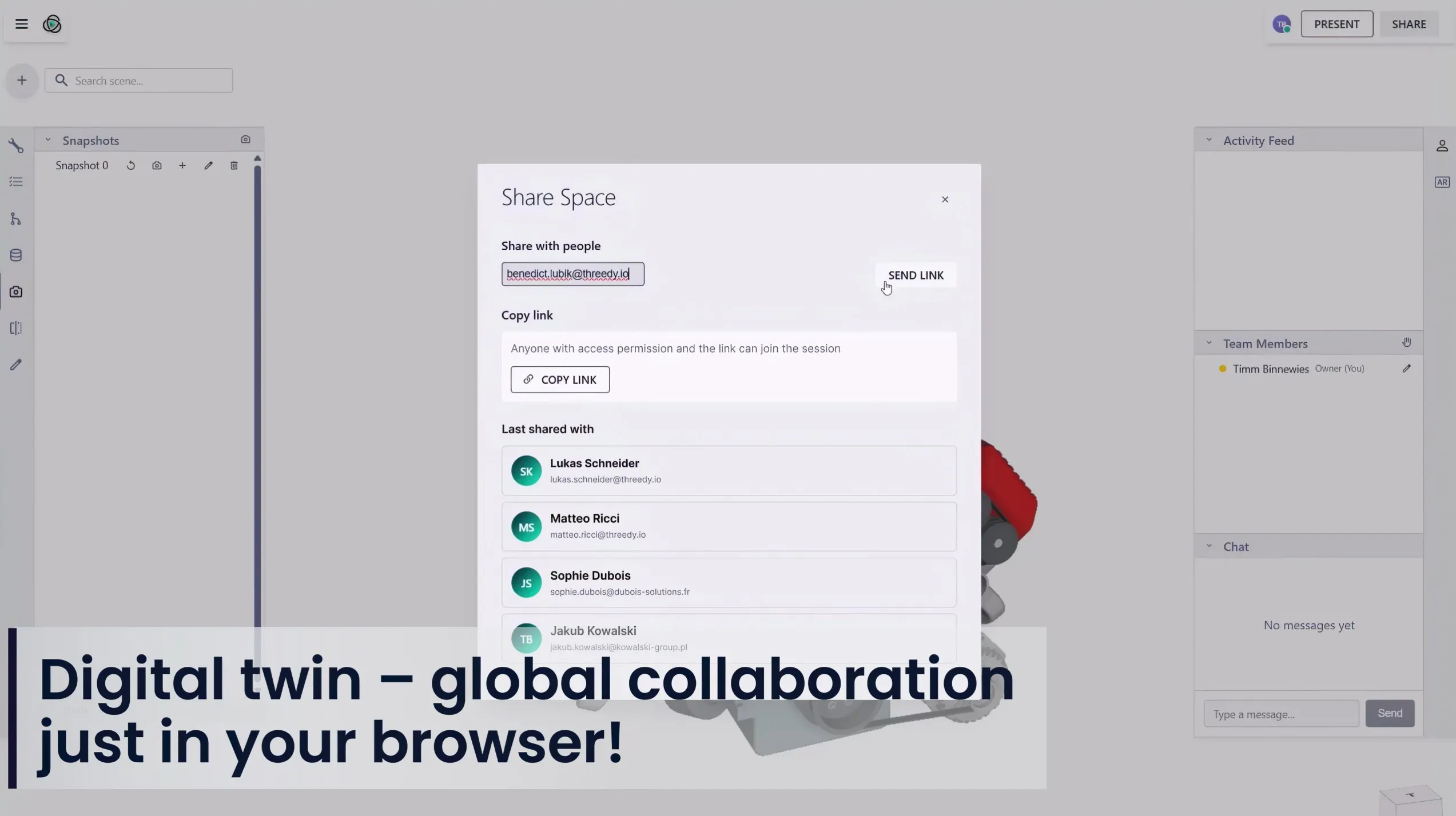 Multiple participants like sales, customers, and engineering can join a shared 3Dsession to explore complex machines simultaneously. Interacting in real time, and collaborates on configurations, layouts, and design variants, creating a truly interactive sales experience.