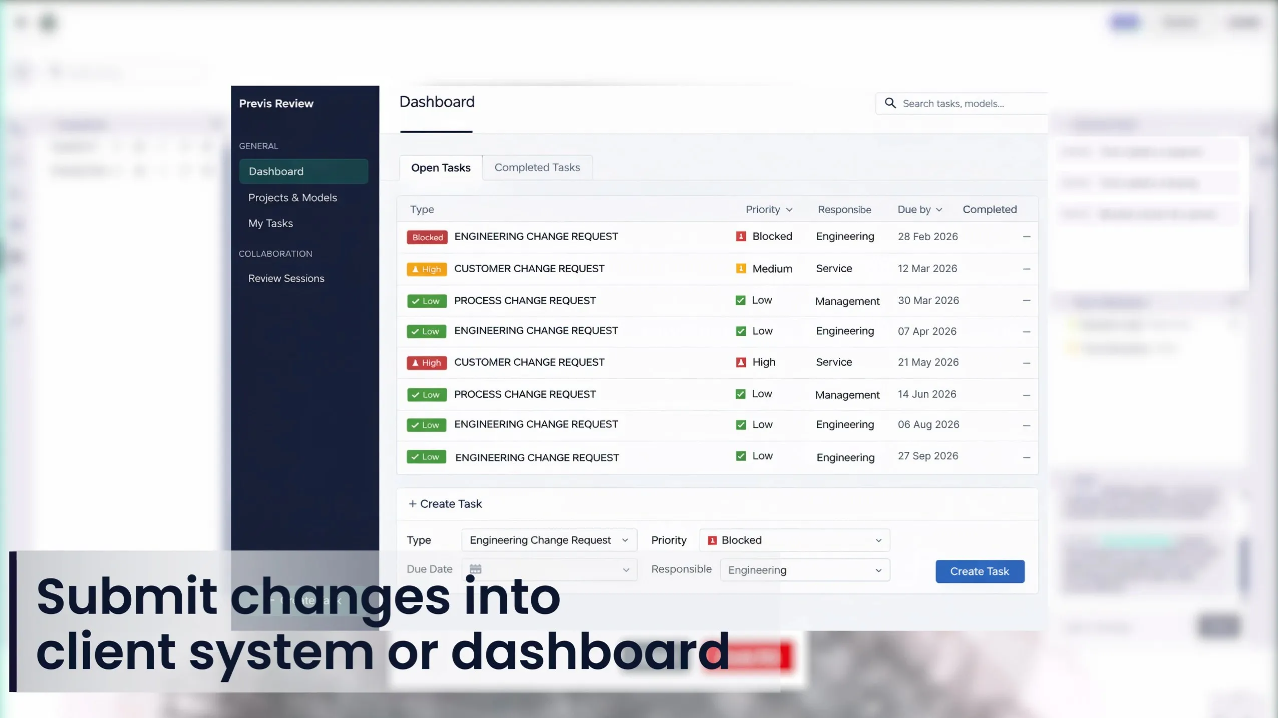 The solution streams native CAD directly from connected PLM/CAD systems and can exchange metadata and references via APIs. Findings and tasks can be synchronized to ticket systems to support structured follow-up.