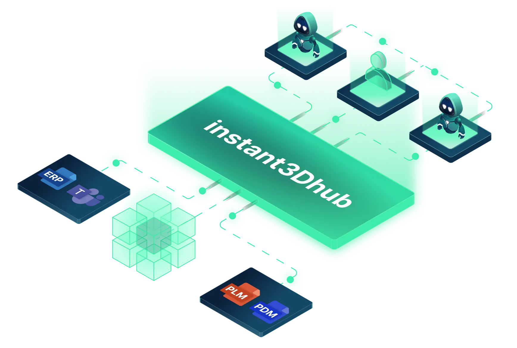 instant3Dhub connects directly to CAD and PLM systems through data gateways and connectors. Once connected, AI agents can immediately access and understand 3D data without requiring manual exports or conversions. For organizations seeking deeper integration, knowledge graph solutions can be layered on top to connect additional enterprise systems, creating a unified AI-accessible view of your entire engineering knowledge base.